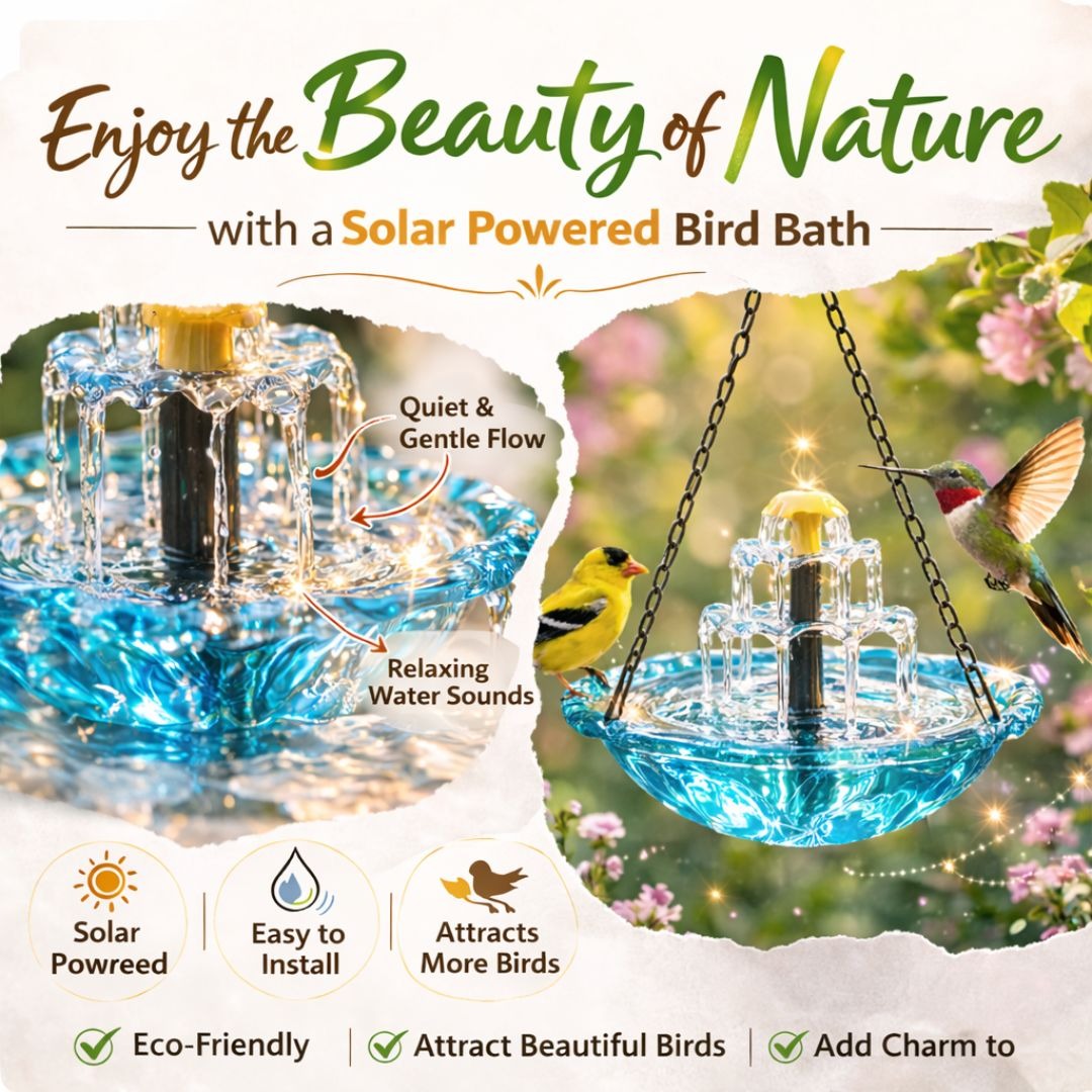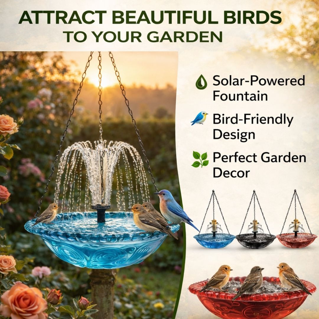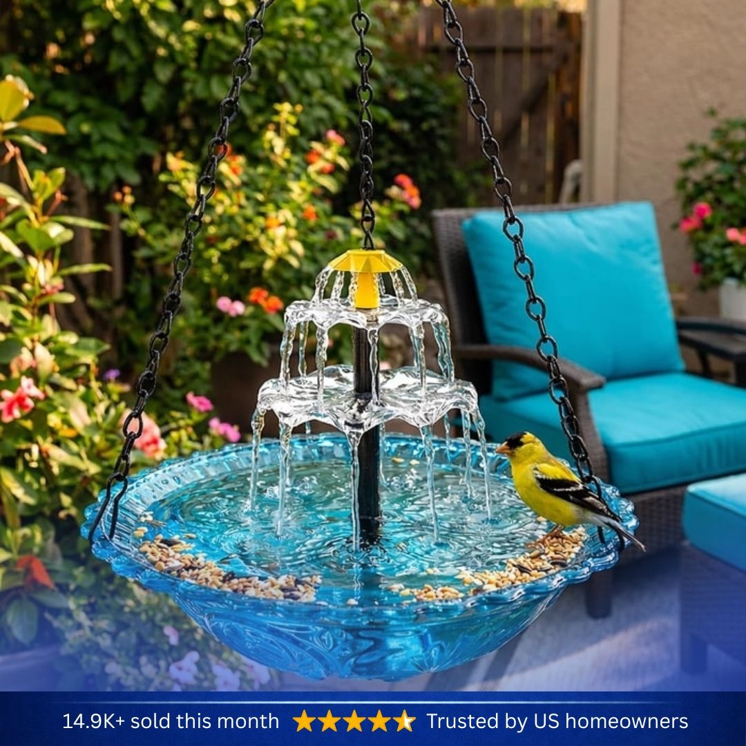 Trusted by customers across 100+ countries, our Solar Cascade Hanging Bird Bath Fountain brings life, movement, and elegance to any outdoor space. Powered by sunlight, it creates a soothing cascade of water that attracts birds and transforms your garden into a peaceful oasis.