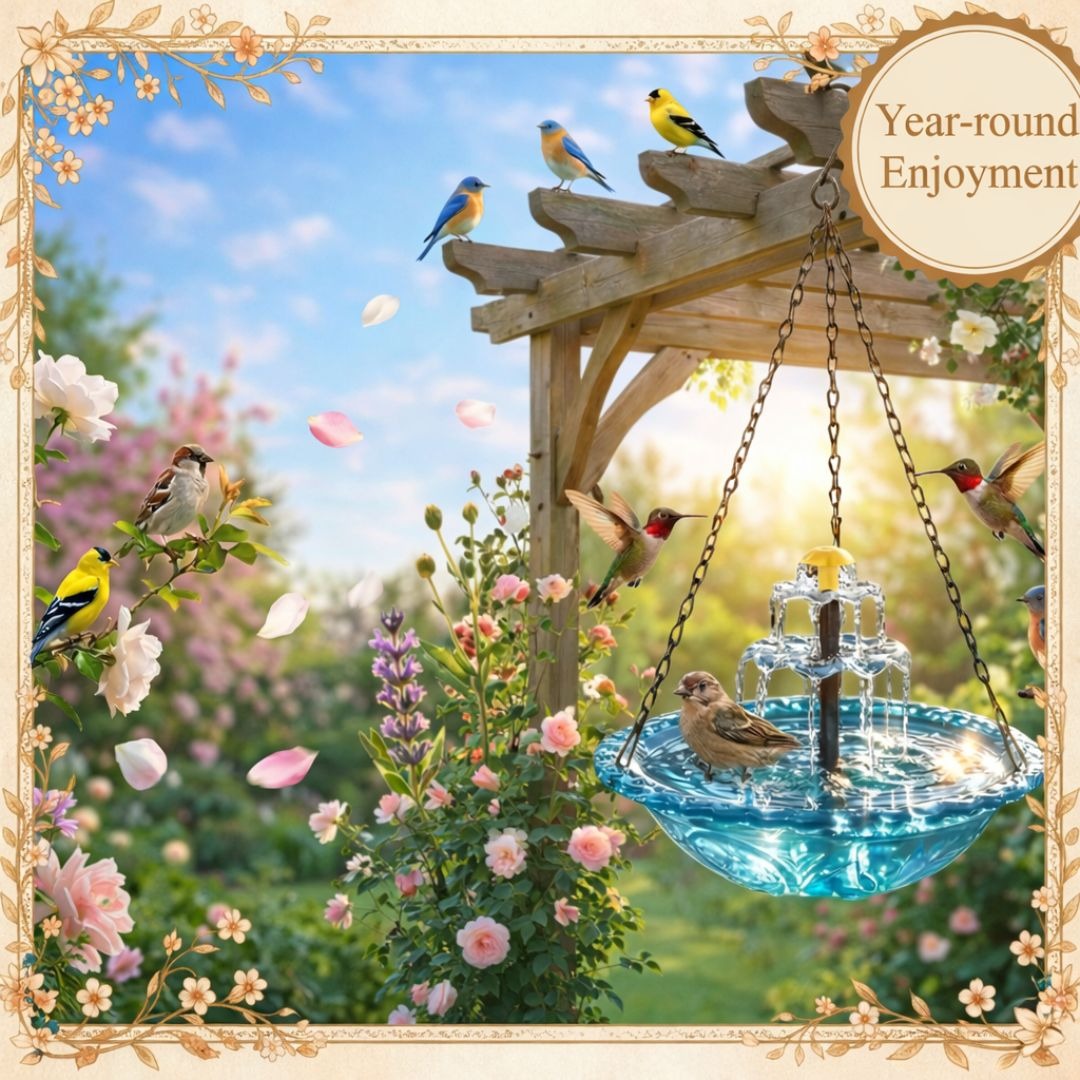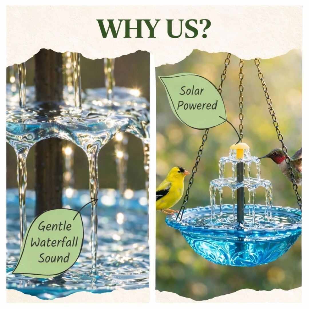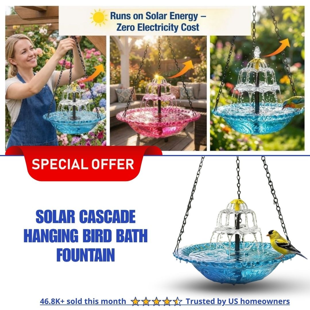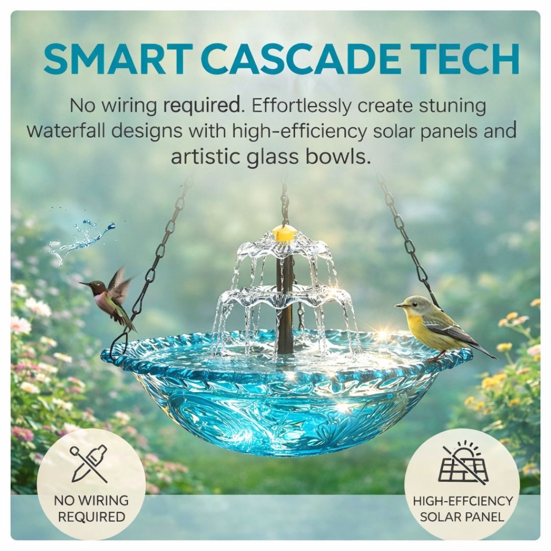 Trusted by customers across 100+ countries, our Solar Cascade Hanging Bird Bath Fountain brings life, movement, and elegance to any outdoor space. Powered by sunlight, it creates a soothing cascade of water that attracts birds and transforms your garden into a peaceful oasis.