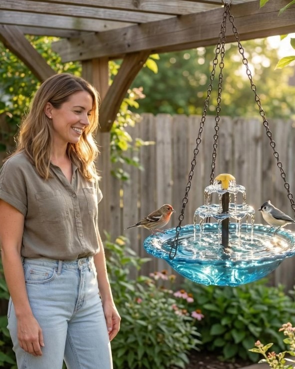 A garden feels different when there’s movement—when sunlight dances on water and birds gather naturally.